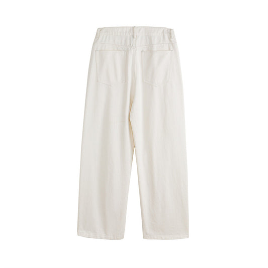 Street Style High-End Vintage Cat-Whisker Texture Pleated Design Men's Wide-Leg Casual Jeans