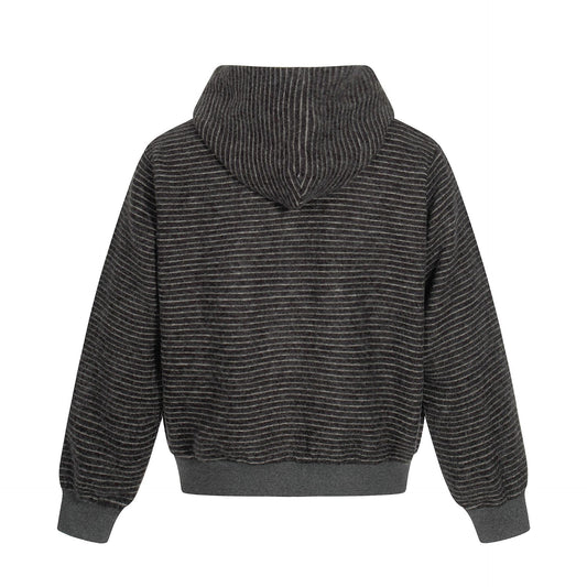 Street Style Unisex Casual Retro Stripe Minimalist Design Short Loose Fit Men's Hooded Cardigan Sweatshirt