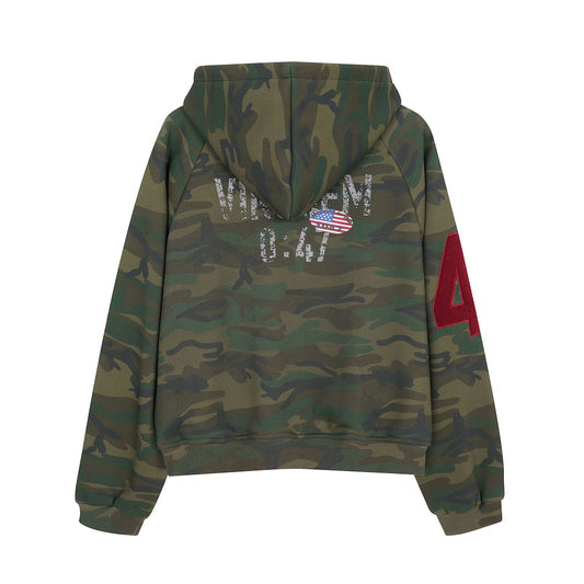 Retro Street Style Camouflage Print Hooded Fleece Sweatshirt Jacket for Men, Loose Fit